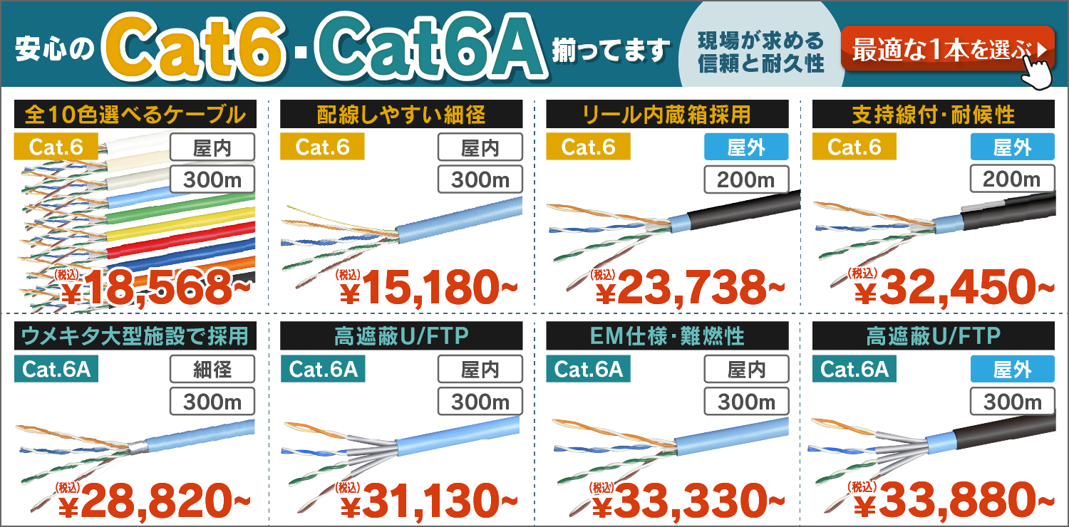 - 【日本製線】ギガビット伝送対応 Cat.6 U/UTP ケーブル 屋内用 300mの取扱を開始しました。