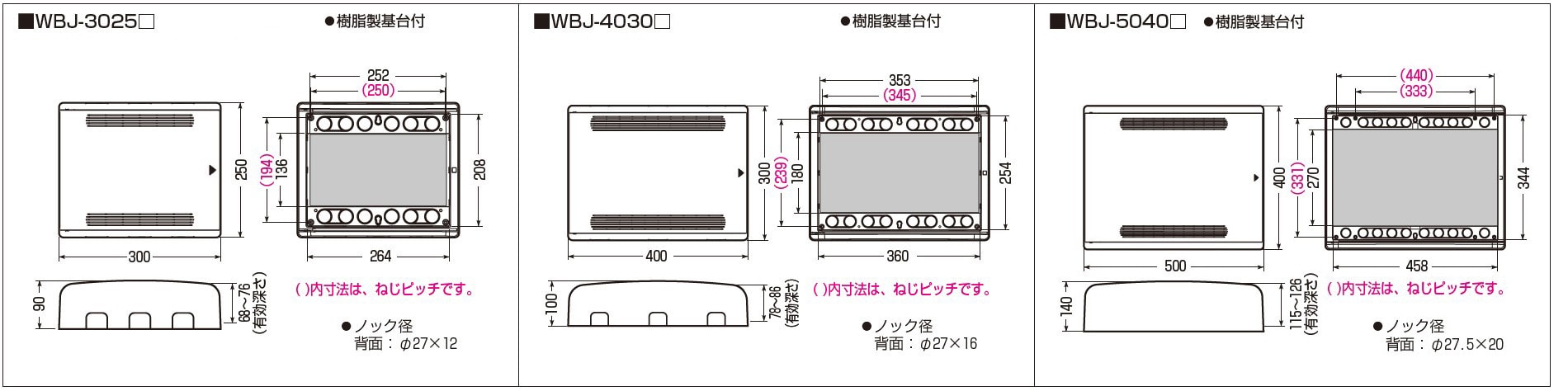上下ノックアウト:(40.5×30.5)×6 ※WBJ-5040は除く