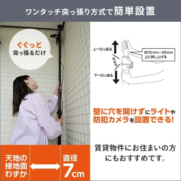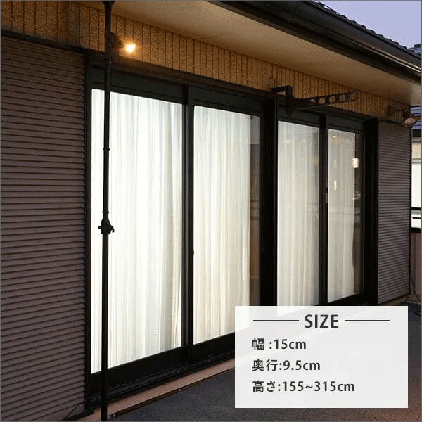 ・サイズ:幅15×奥行9.5×高さ155~315cm(センサーライト部を含まない)