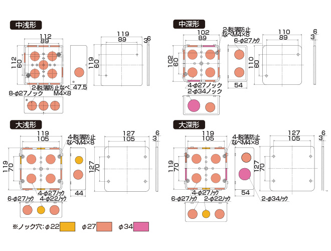 | 4OBL5APJHW | アイボリー | 大深形 | φ22×2個、φ27×6個、φ34×2個 |