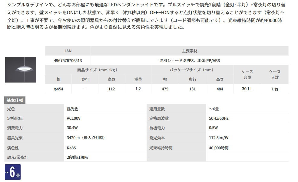【アイリスオーヤマ】洋風LEDペンダントライト 調光 6畳 PL6D-YAE2