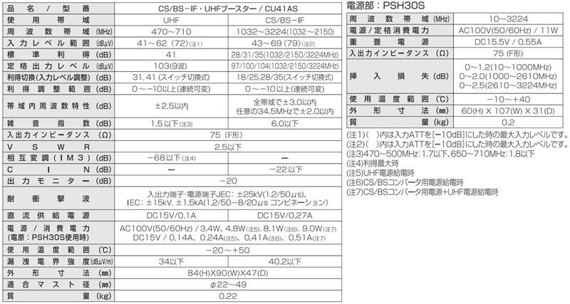 【DXアンテナ】4K・8K放送対応 家庭用ブースター(UHF/BSブースター) CU41AS