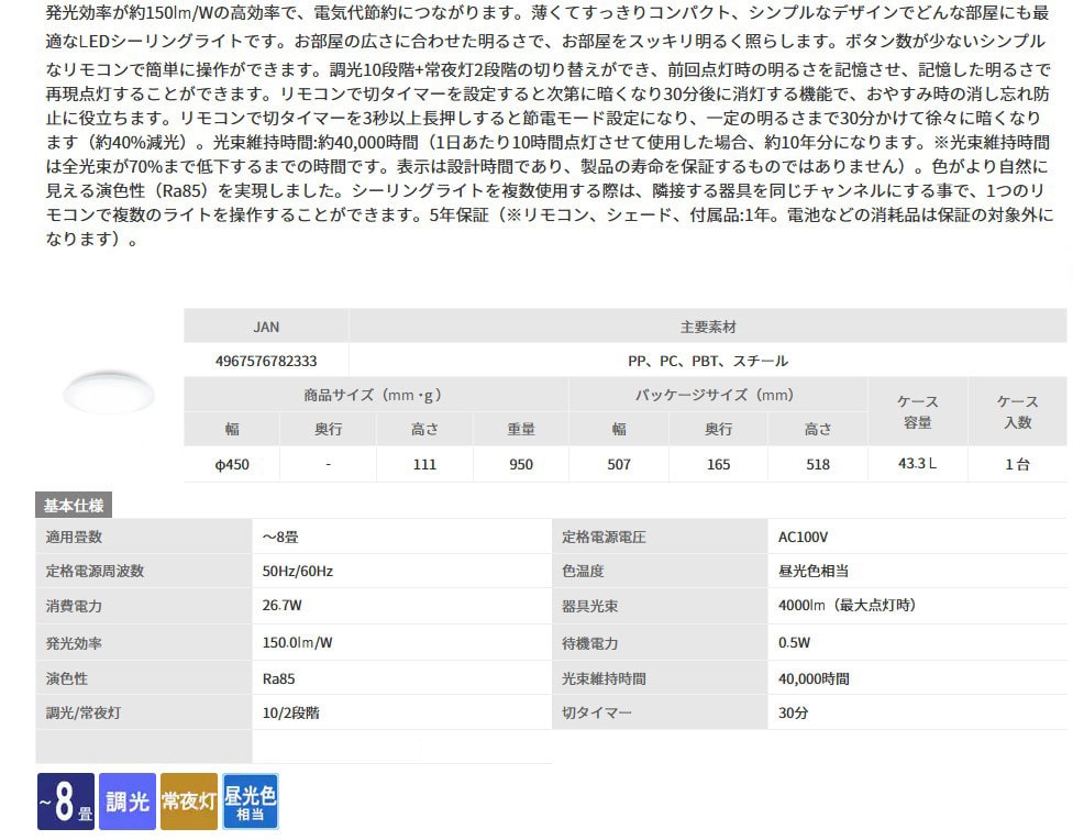 【アイリスオーヤマ】LEDシーリングライト 調光 8畳 CEA8D-7.0