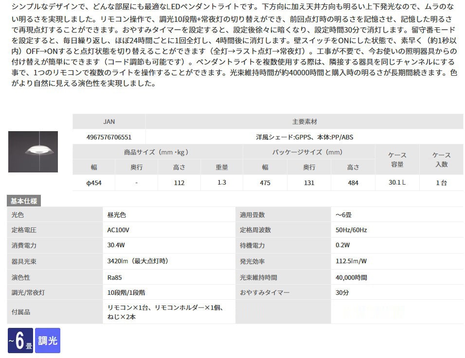 【アイリスオーヤマ】洋風LEDペンダントライト 調光 6畳 PL6D-YA2