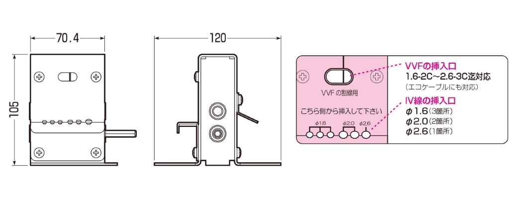 VVFケーブル:1.6-2C~2.6-3C ※エコケーブルにも対応