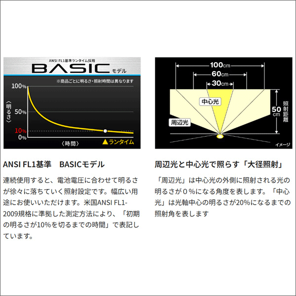 ※中心光は光軸中心の明るさが20%になるまでの照射角度を表します。