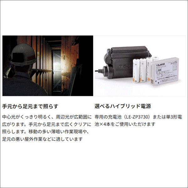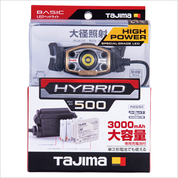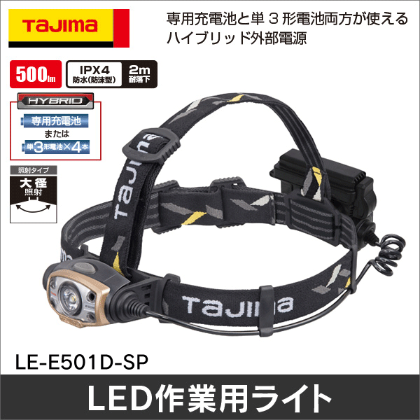 【タジマ】ハイブリット式ハイパワーヘッドライト ED(500lm)大径照射 3730セット LE-E501D-SP