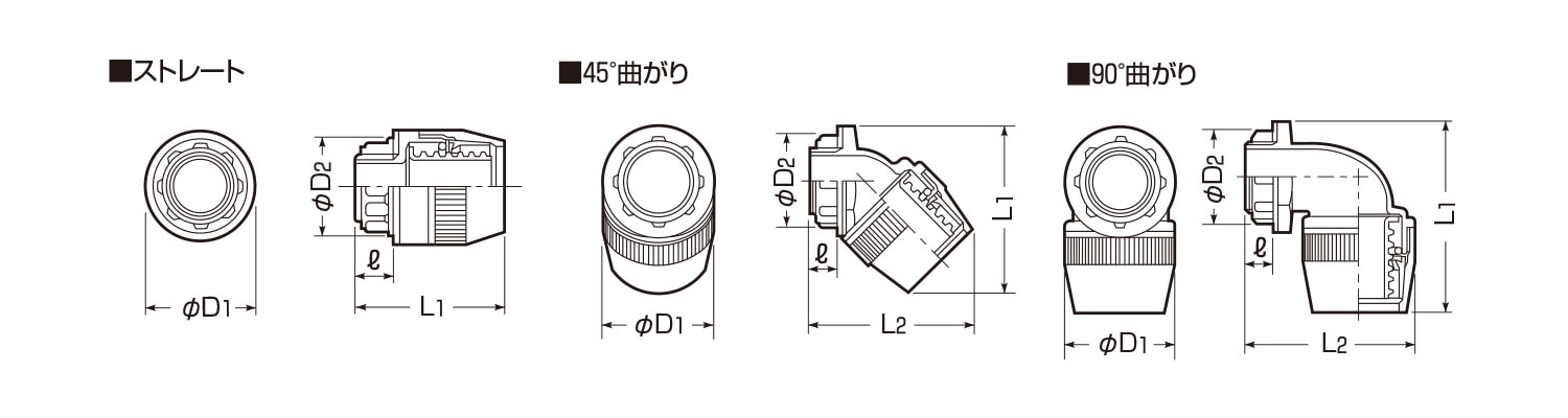 電線管の呼び | ねじの呼び | φD1 | φD2 | L1 | L2 | ℓ |