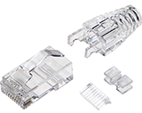 エイリアンクロストーク対策を施したCat6Aケーブルは、ケーブル外径が大きく、「簡単コネクタ」「クイックコネクタ」と呼ばれるような製品の中ではサイズが合わないものもあります。コネクタを選ぶ際は専用品からお選びください。