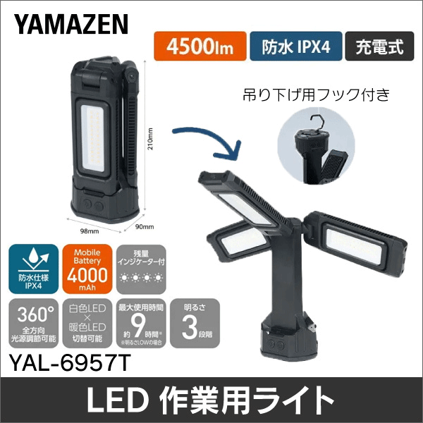 「在庫がなくなり次第販売終了」 ●折りたためるバーライト ●トップライト&メインライトで隙間から広範囲まで使える ●USB充電式 ●COB LED:多数のLEDチップを密集して基板に直接実装した光源。多灯式に比べ多重影ができにくく、照射範囲も広い特長を持つ。 ●底面マグネット ●背面マグネット ●折り畳み可能 ●トップライト: ハンディトーチとしても使用可能。 ●インスタントオフスイッチ:点灯後、一定時間経過後にスイッチを押すと、どのモードからでも一回の操作で消灯できます。 ●バッテリーインジケーター/チャージングインジケーター: 充電状態と電池残量の目安を表示。 ●Lowバッテリーインジケーター:電池がなくなる前にLEDが点滅してお知らせ。 ●バックプッシュスイッチ ■仕様 ・使用光源:高輝度チップタイプ白色LED×1、高輝度白色COB LED×2 ・明るさ(約) GZ-705 シングル点灯:50ルーメン(トップライト)/150ルーメン(Ecoモード時)/300ルーメン(Highモード時) ダブル点灯:50ルーメン(トップライト)/200ルーメン(Ecoモード時)/600ルーメン(Highモード時) GZ-706 シングル点灯:50ルーメン(トップライト)/150ルーメン(Ecoモード時)/400ルーメン(Highモード時) ダブル点灯:50ルーメン(トップライト)/200ルーメン(Ecoモード時)/800ルーメン(Highモード時) ・光度(約) GZ-705 シングル点灯:28カンデラ(トップライト)/84カンデラ(Ecoモード時)/162カンデラ(Highモード時) ダブル点灯:28カンデラ(トップライト)/89カンデラ(Ecoモード時)/285カンデラ(Highモード時) GZ-706 シングル点灯:28カンデラ(トップライト)/40カンデラ(Ecoモード時)/143カンデラ(Highモード時) ダブル点灯:28カンデラ(トップライト)/75カンデラ(Ecoモード時)/329カンデラ(Highモード時) ・使用電池 GZ-705:リチウムポリマー充電池(3.7V、800mAh&3.7V、1,450mAh)内蔵 GZ-706:リチウムポリマー充電池(3.7V、1,550mAh&3.7V、2,000mAh)内蔵 ・充電時間(約) GZ-705:6時間 GZ-706:8時間 ・電池寿命:充放電、約300回 ・点灯時間(約) GZ-705 シングル点灯:14時間(トップライト)/10時間(Ecoモード)/6時間(Highモード) ダブル点灯:14時間(トップライト)/6時間(Ecoモード)/3時間(Highモード) GZ-706 シングル点灯:17時間(トップライト)/15時間(Ecoモード)/6時間(Highモード) ダブル点灯:17時間(トップライト)/8時間(Ecoモード)/3時間(Highモード) ・照射特性:照射角度155° ・照射距離(約) GZ-705:34m(最大時) GZ-706:36m(最大時) ・保護等級:耐塵・防滴仕様(IP64準拠) ・落下耐久:2m落下耐久 ・本体サイズ(約) GZ-705:W35.0×H266.0×D28.0mm GZ-706:W35.0×H360.0×D38.0mm ・本体質量(約) GZ-705:201g(電池含む) GZ-706:287g(電池含む) ・付属品:専用Micro USBケーブル(50cm)×1