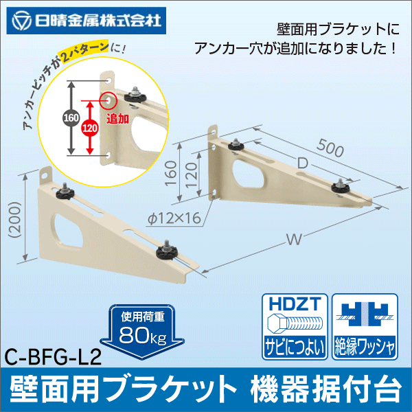 【日晴金属】室外機据付台 カベ面用 C-KZG-L 【Lサイズ】 ・エアコン固定寸法:W70~940 D160~400 ・使用荷重:80kg ・材料:溶融亜鉛メッキ ・製品重量:5.3kg/21.2kg5,360円(税込)~