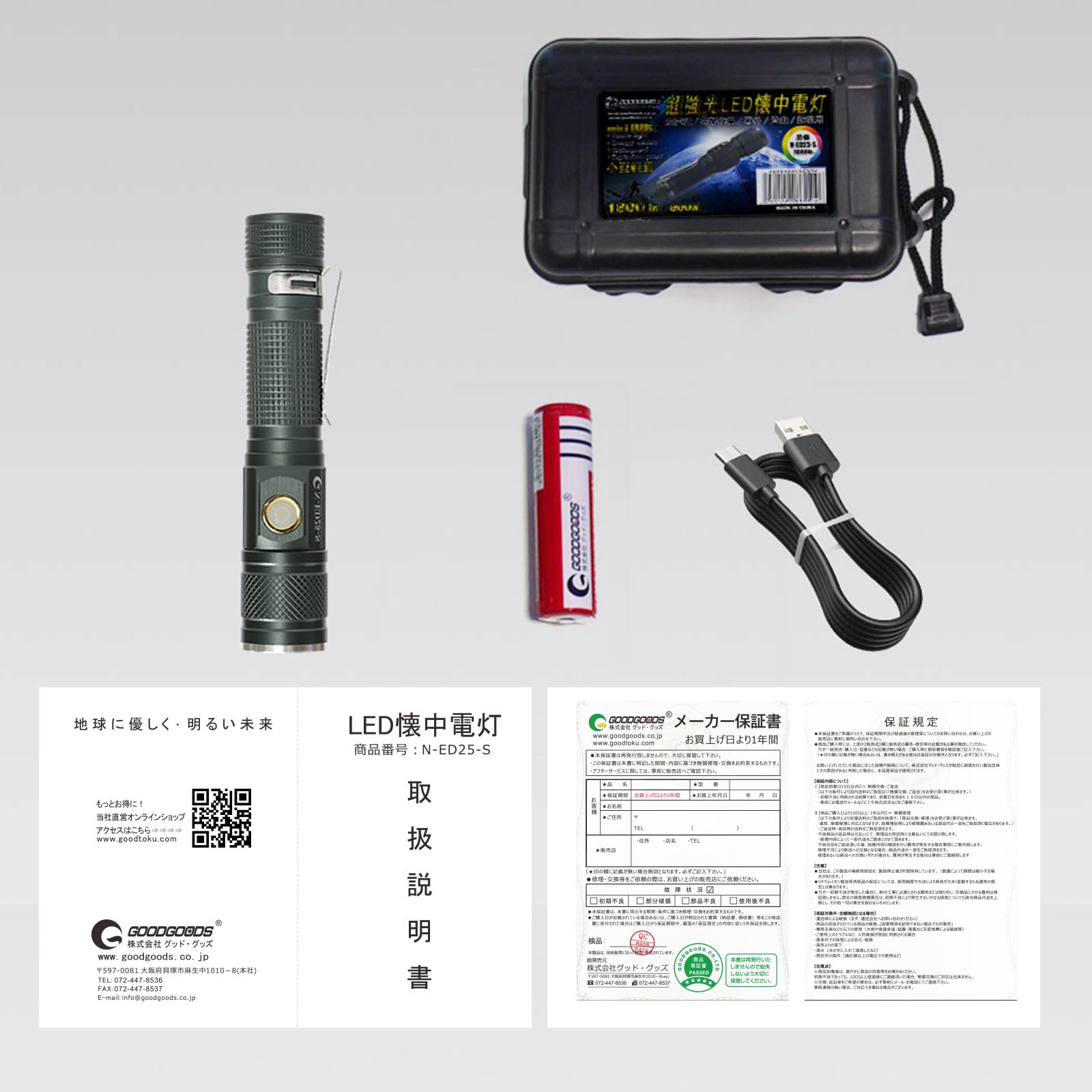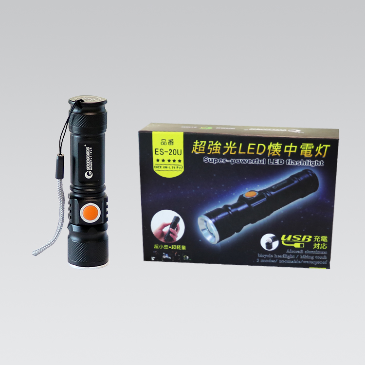 「在庫がなくなり次第販売終了」 ●マグネット付テールスイッチ ●防塵・防滴仕様(IP54準拠)&2m落下耐久 ●USB充電式 ●スライドフォーカスシステム:ヘッド部分を前後させることで、簡単に照射角調整をする事ができる ●インスタントオフスイッチ:点灯後、一定時間経過後にスイッチを押すと、どのモードからでも一回の操作で消灯できます ●チャージングインジケーター:充電中の充電状態をお知らせ ●マグネット付テールスイッチ ■仕様 ・使用光源:高輝度チップタイプ白色LED×1 ・明るさ(約):200ルーメン(Highモード時)/60ルーメン(Midモード時)/10ルーメン(Ecoモード時) ・光度(約):496カンデラ(Highモード時)/161カンデラ(Midモード時)/31カンデラ(Ecoモード時) ・使用電池:専用リチウムイオン充電池 3.7V 320mAh ・充電時間(約):1.5時間 ・電池寿命:充放電 約500回 ・点灯時間(約):2時間(Highモード)/5時間(Midモード)/16時間(Ecoモード) ・照射特性:フォーカスコントロール ・照射距離(約):45m(最大時(スポットビーム時)) ・保護等級:耐塵・耐水仕様(IP54準拠) ・落下耐久:2m落下耐久 ・本体サイズ(約):φ17.6×125.6mm ・本体質量(約):52g(電池含む) ・付属品:Micro USBケーブル(50cm)×1、ペンクリップ×1、専用充電池×1まとめ買いがお得!